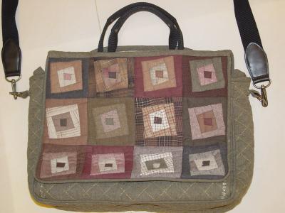 這是因為要送給老公做的,是目前我做過最複雜的包包 雖然不很完美但我很喜歡喔這是前蓋打開的樣子,有一個大口袋拉鍊打開有做夾層這是包包的背面,也有一個口袋,因為是我家先生照的,所以沒仔細的把裡面也照一下