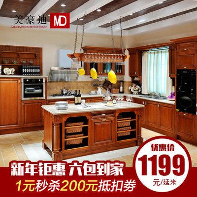 天貓購物商城美豪迪整體櫥櫃定制進口南美櫻桃實木櫥櫃歐式美式廚房廚櫃定做 - 520928306843