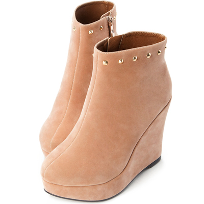 AIR SPACE★歐美首選~蜜桃絨面圓鉚釘楔型踝靴-粉商品網址:
