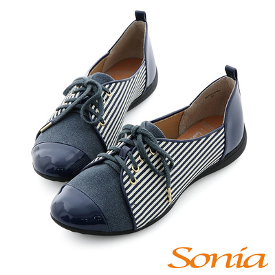 Sonia國民時尚‧拼接帆布休閒便鞋-沉穩藍
