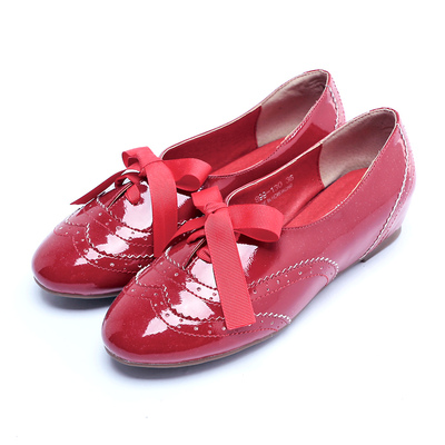 Kuru Mira☆微甜中性☆漆皮內增高雕花牛津鞋*紅