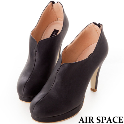 AIR SPACE★香榭氣息~素面皮革後拉鍊式高跟踝鞋-黑