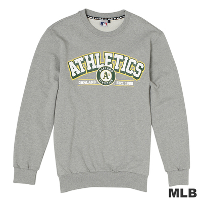 MLB-奧克蘭運動家隊印花運動厚T恤-麻灰(男)