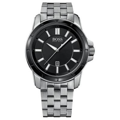 Hugo Boss 英倫紳士系列大三針鋼帶腕錶-黑/46mm