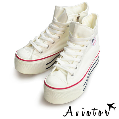 Aviator*韓國空運-街頭潮流厚底星星彩色帆布鞋-白