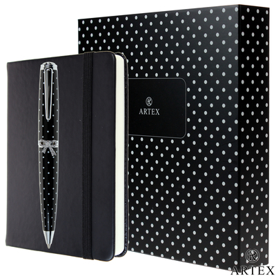 ARTEX 水玉點點蝴蝶結水鑽筆 黑色皮質筆記本禮盒