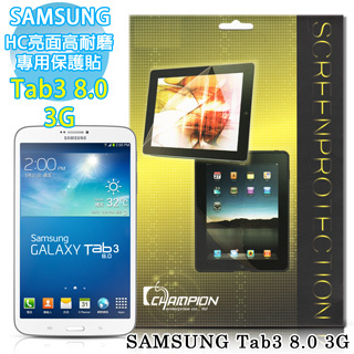 【CHAMPION】SAMSUNG Tab3 8.0 3G 專用高耐磨3H螢幕保護貼(亮面款)