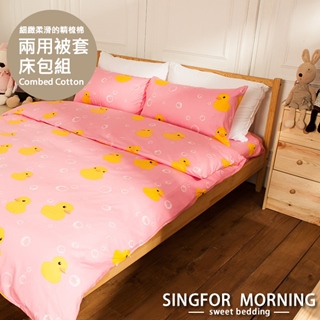 【療癒小鴨_粉】幸福晨光-雙人加大孕韟◇諿瑒眹漭帠Q床包組