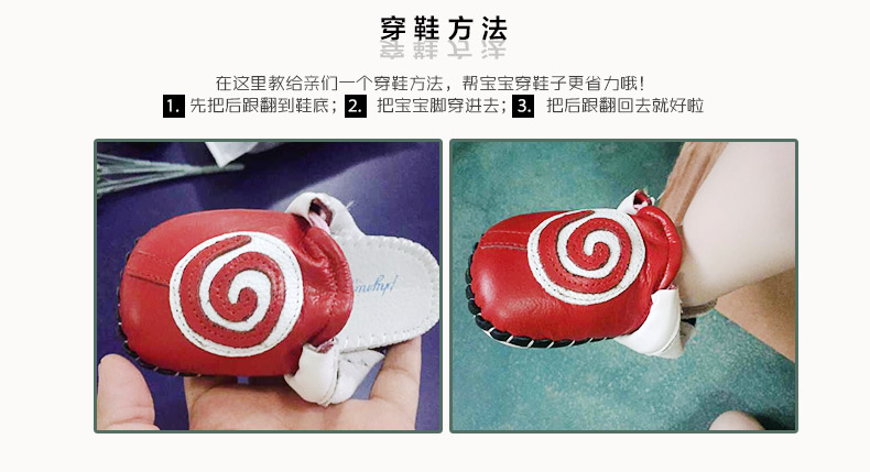 但是我們賣了這么多年,羊皮容易磨損 ,所以我們鞋面跟鞋底改為縫包,后跟還是采用松緊,其實除了難穿一點點,但是寶寶脫不掉,而且