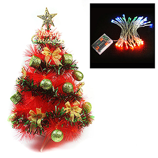 【聖誕裝飾品特賣】臺灣製2尺(60cm 特級紅色松針葉聖誕樹-紅綠金配件+50燈LED電池燈-弗m光)
