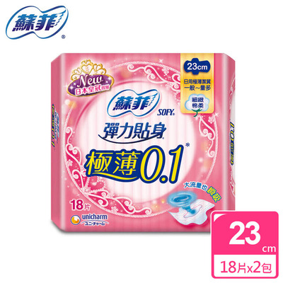 【預訂折扣優惠】【蘇菲】彈力貼身極薄0.1cm潔翼(23CM-18片 x 2包-組) 信用卡限時刷卡優惠