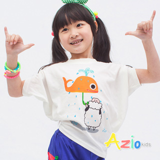 【Azio Kids美國派】綿羊撐著鯨魚傘不規則衣襬T(白) 開箱文