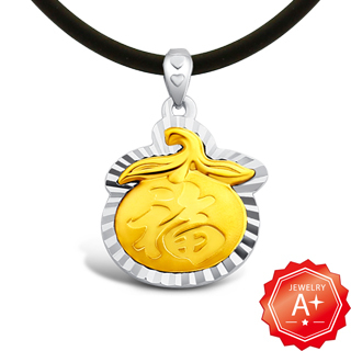 【A+金飾】千足銀鑲金足金金箔配黑繩(大吉大利)