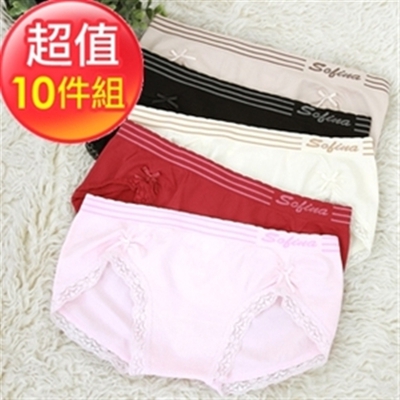 【莫妮塔】無縫低腰/蕾絲俏麗蝴蝶結女褲10件組(R083 )在這買最好康