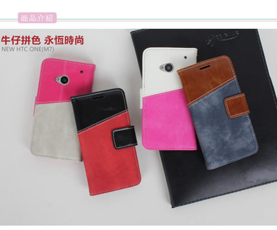 好物推薦 Myshell NEW HTC ONE 瘋牛仔拚色可立保護皮套