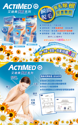【ACTIMED】艾迪美蜜蠟脫毛片(2對入)商品網址: 商品訊息功能: 商品訊息描述: 生產公司:ACTIMED商品規格:13cmX16cm/片本盒內含2對/4片使用說明:1.先將脫毛部位清潔乾淨並保...