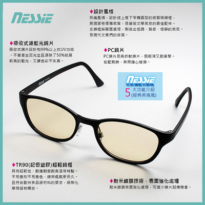 價位便宜又優惠, 且各知名部落客大推【Nessie 尼斯濾藍光眼鏡】經典英倫風-卡夢黑(威靈頓框),