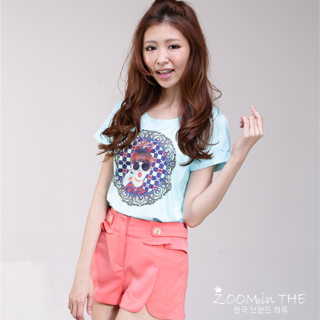 【ZOOM in THE】塗鴉印花紅唇女孩紡紗上衣