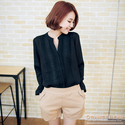 0407新品 甜美華麗~V領開襟打摺修身刺繡上衣.2色產品的圖文皆引用自ob嚴選品牌購物,圖文所有權皆為原所有權人所有,價格和內容如有變化依ob嚴選品牌購物網為主