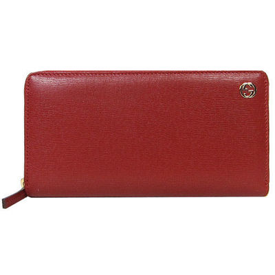 GUCCI 經典金屬小雙G LOGO 皮革拉鍊長夾(紅)