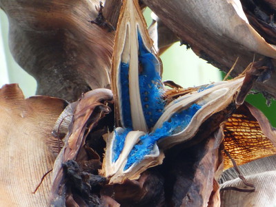 旅人蕉與白鳥蕉樹型相似,白鳥蕉的苞片黑紫色,旅人蕉的苞片綠色。 果實為蒴果, 3 室,褐色,形似香蕉 果實為蒴果, 3 室,褐色,形似香蕉 落花 葉鞘基部及花苞片可貯甚多量之鮮水 莖部環紋明顯...