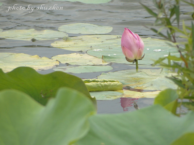 謝謝詩韻美詩~~ 〈渠水荷韻 〉 冥然間 一枚嬌妍靜默地昂向天宇 倒影掩映荷田 搖曳成一方古典 綻放澹然芬芳 是江南水鄉 卻毋須划槳 安閒地趕...
