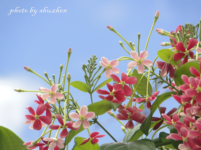 謝謝網友Buzzard 告知.這是琉球紫蛺蝶〈雄 〉 使君子 英文名稱: Rangoon Creeper 學名: Quisqualis indica Linn. 科名...