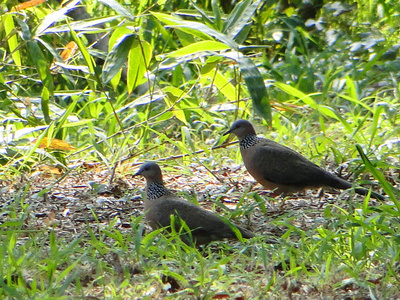 珠頸斑鳩 (Spotted Dove) 【留鳥】 類別: 鳩鴿科 身長: 30厘米 (12英寸) 特徵: 喉嚨到腹部的地方為暗紅色,脖子後面及兩側顏色為黑底白點;嘴巴黑褐色,腳為紅色,頭為灰色;翅膀...