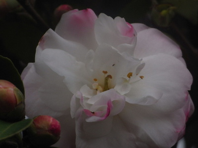 攝影習作‧茶花茶花很美,常見紅色或白色純色的茶花,而在金山寺遇見的這株茶花也很教人流連。白與粉紅或漸層或暈染,每一朵暈染的濃淡各不同,很值得細細品味。
