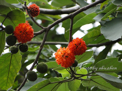 構樹雌雄異株,這是雌花。 雄花株 雄花 雌花成長中果實 未熟果 綠色未熟果 ...