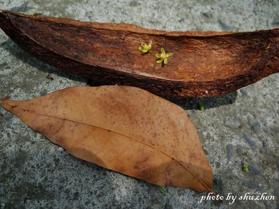 新生葉 開裂的果 蒴果 落果、葉、外殼、種子 花序與種子 種子脫落後的內核 是標新立異,或是大自然的刻意春...