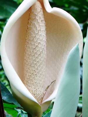 天南星科的蓬萊蕉又名龜背芋,葉形奇特,孔裂紋狀,極像龜背。 花為佛焰花序 莖節粗壯又似羅漢...