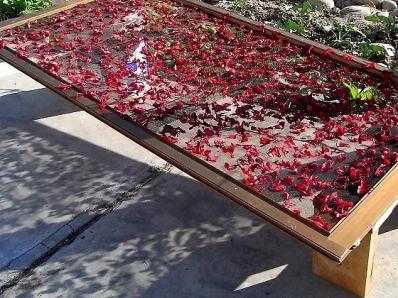 洛神花於2008.12月初拍攝於南投縣民間鄉 剪下堆放一旁,等著將果實一顆顆採收的洛神 內藏的子房 晒洛...