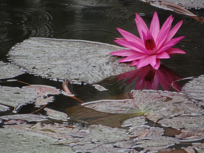 絲雨激起的漣漪豐富一朵睡蓮的姿影