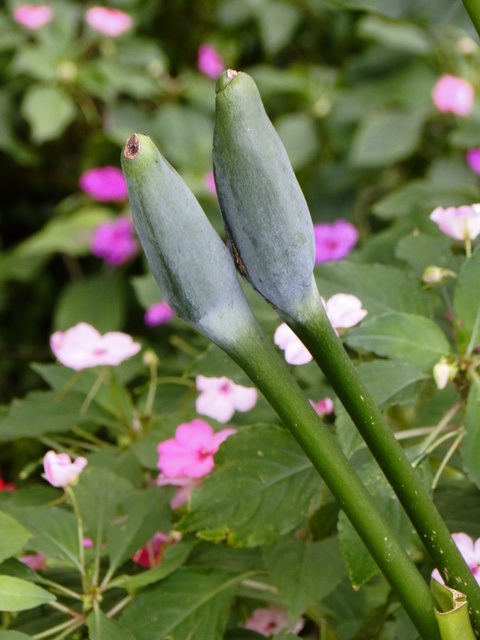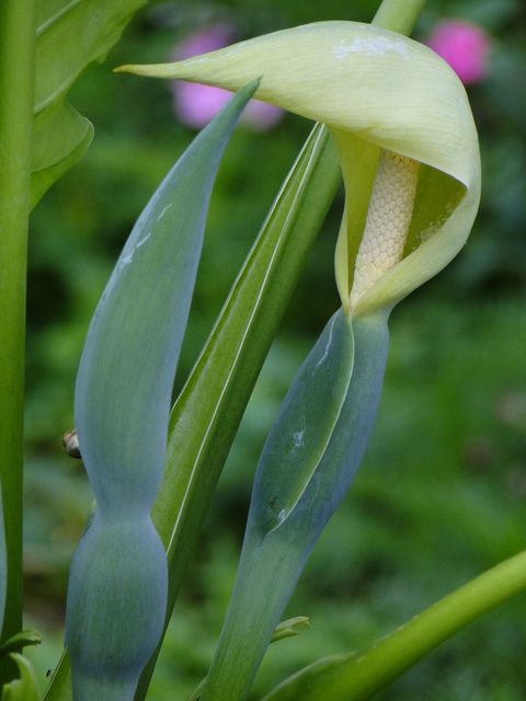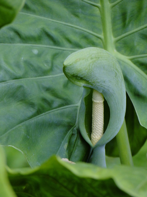 花: 花序柄常單生;春季開花,佛焰苞肉質,綠色;雌花在下,雄花在上,中央為中性花。