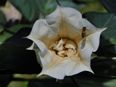 茄科,曼陀羅屬,多年生草本或半灌木狀,原產熱帶亞洲。株高 0.5-1.5 公尺,全株近於平滑無毛或在幼嫩部分被短柔毛。莖粗壯,圓柱形,紫黑色,基部木質化。