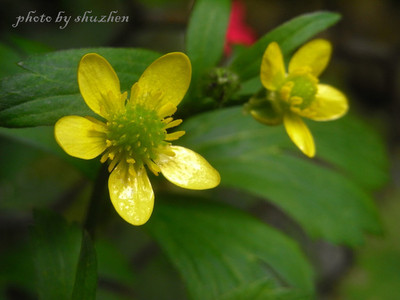 禺毛茛Ranunculus can toniensis DC.為毛茛科多年生或一二年生草本,葉密生黃白色糙毛。三出複葉互生,中央小葉3裂,側生小葉2至3裂,緣有細密齒,莖上部小葉不裂。花黃色,聚合果近球形,直徑1厘米。幼苗子葉呈闊卵形,長1厘米,寬0.6厘米,先端鈍圓,微凹,全緣,羽狀脈明顯,具長柄。初生葉單葉互生,為三淺裂掌狀葉,掌狀脈明顯,無毛,具長柄。後生葉為三深裂掌狀葉,葉柄密生橫出長柔毛。幼苗全株呈鮮綠色。