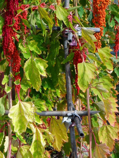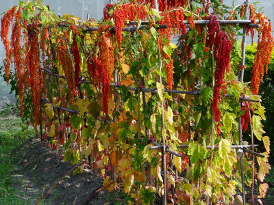 果實: 果實穗狀下垂,長可達 1 公尺;胞果完全為花被所包或稍露,扁圓形,有黃、紅、橙紅、紫紅等色,果皮膜質,有小泡狀皺紋,與種子貼生,不開裂;種子橫生,雙凸鏡狀,直徑約 0.15 公分,邊緣鈍,黑色,有光澤,表面具淺溝紋;胚環形,胚乳豐富,粉質。春至夏開花結果。