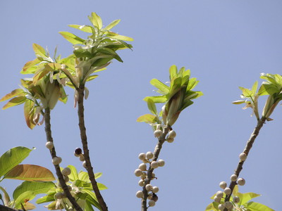 葉 : 葉單生,互生,叢生於枝條先端,一年常落葉 2 次,但樹枝上僅短時期無葉片;葉片及嫩枝初呈紅色,葉片長橢圓形,長 10~20 公分,寬 4~6 公分,先端鈍圓而有尖突,基部圓,紙質,全緣或波狀緣,表面呈有光澤綠色,背面淡綠色,表裏兩面光滑無毛,主脈明顯;葉柄 1~1.5 公分,光滑無毛;具托葉,白色早落。