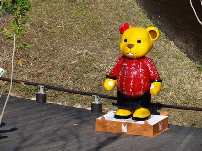 閒逛裡拍了幾座泰迪熊,未久人潮逐漸聚集了起來。除了一般遊客外,還有許多幼稚園老師身後跟著一群群小朋友,乖乖地排著隊一個一個上場等著與泰迪熊合影。只見老師十分忙碌,下一個下一個之聲不絕於耳,被拍照過的小朋友另一旁排隊候著,等著老師再帶往下一隻泰迪熊合影。看著諸多稚嫩童顏,心覺可愛之餘,一點點感觸不覺間也上了心頭……。