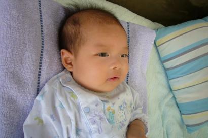 小蛋頭一天一天長大 越來越重,表情越來越豐富 前兩天,我們突然發現,ㄟ,小蛋頭會抬頭看我們了耶! 耶耶耶! 下一張照片,檔名是『肥了女兒瘦了爸爸.JPG』