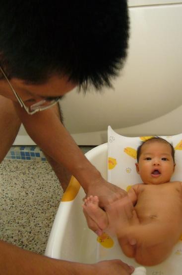 這個黃色小鴨子的洗澡盆,是夫人精心挑選的,黃色鴨子,和恬靜的黃機喔感覺很配很配(對了,阿珮去法國這麼久了,怎麼都還沒有回來)
