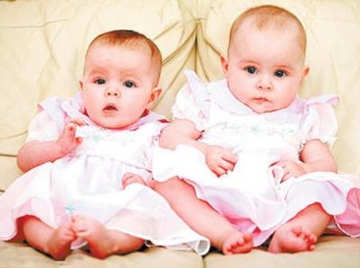 五個月大的蘇格蘭女嬰亞美(左)和莉亞(右)同一天先後出生,但兩人受孕時間足足差了三周,莉亞是姊姊,體重比妹妹稍大一號。更令人驚奇的是,兩姊妹的媽咪起初並不知已懷孕,仍繼續服用避孕藥,卻在三周內兩度受孕,機率僅百萬分之一。(文:黃文正/圖:摘自英國每日郵報網站)