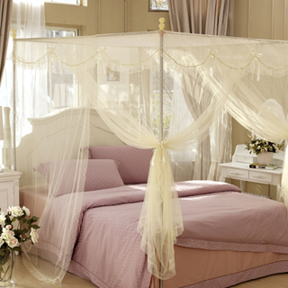 【Yeecool】3門花之緣落地式無拉鍊米紗(加粗螺旋不鏽鋼落地支架6-7king床蚊帳)