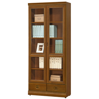 【時帖峞j欣凱2.7尺樟木色下抽開放書架(304-5)