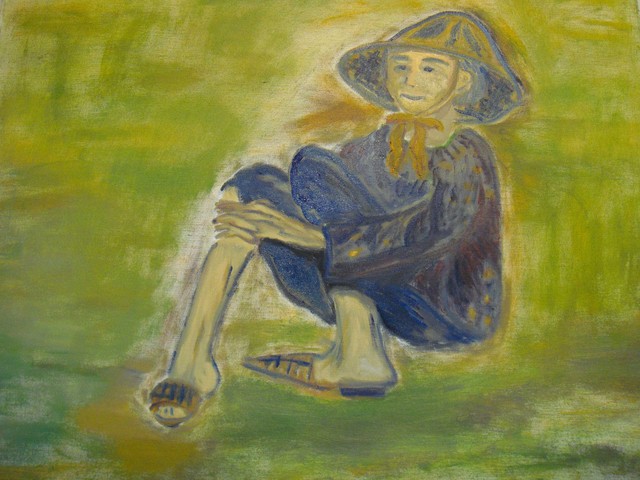 藍衫斗笠木屐