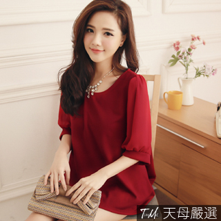 momo,momo購物台,momo購物網>【天母嚴選】9月主打-圓領泡泡雪紡接袖傘狀長版上衣(共四色)