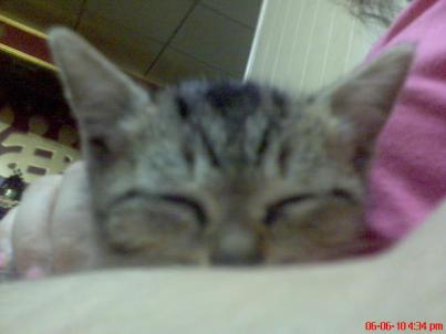 我們還是把小喵喵養下來了 討論了好久 可樂.漢堡.鱈魚堡.大冰奶.旺旺.狗狗....一大堆奇怪的名字 我們終於決定是咪露 奇怪的是 牠也只對這個名字有反應 真特別 哈哈 但是我們家的咪...