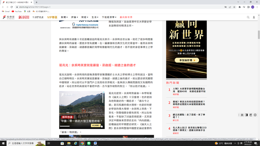 該文首揭人盡皆知 余英時先生是思想史大家;