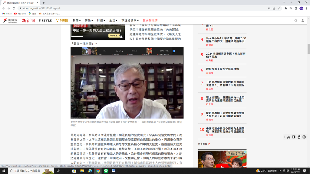以聯經出版社舉辦「余英時紀念論壇」系列線上講座,